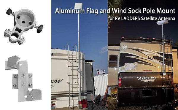 Adjusts to all size poles up to 2.5 inch; Sturdy RV Flag Mounting Pole System, Strong Lightweight Construction Quick and Easily Mounts to your RV's ladder