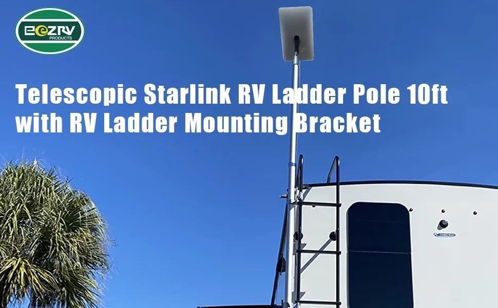 Starlink Ladder Telescopic Pole 10FT with Starlink (GEN 3 / V3) Pipe Adapter and RV Ladder Mounting Bracket Kit